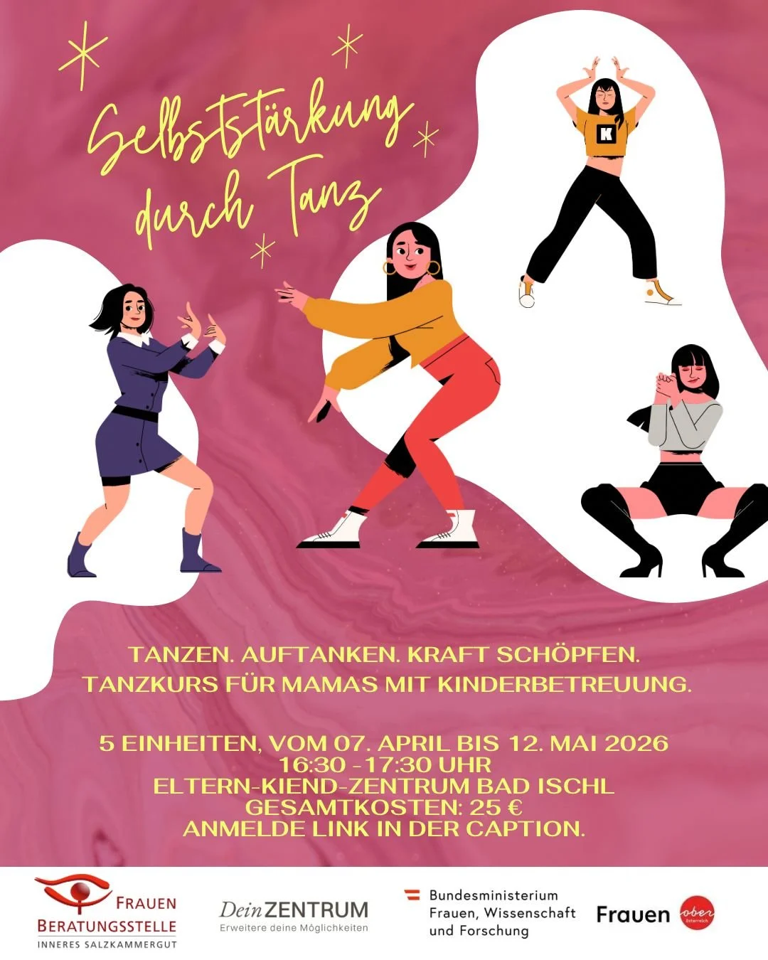 Dieser Tanzkurs ist für Mamas, die sich Zeit für sich selbst nehmen, neue Energie tanken und ihr Körpergefühl stärken möchten. Für eure Kinder ist in der Zwischenzeit gut gesorgt!